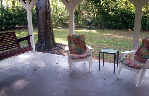 The large back yard is a great place to catch up on your favorite book. The patio also has an Old Florida patio swing, perfect for enjoying a glass of iced tea and relaxing to the sounds of the birds and rustling leaves.