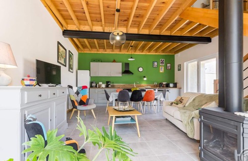House adjoining a house. Living room with wood-burning stove (TV). Open-plan kitchen (induction hob, oven, refrigerator with freezer, dishwasher, microwave, espresso machine, food processor, and washing machine). Separate toilet. On the 1st floor: bedroom 1 (2 single beds 90x190). Shower room with toilet. Bedroom 2 (double bed 140x190). Baby equipment available upon request. Electric heating included. All charges included. Sheets and towels provided. Beds made upon arrival. Cleaning service at an additional cost. Private unenclosed terrace. Garden furniture. Barbecue. Deckchairs. Parking. You will discover this well-hidden hamlet on the heights of Bretteville. Nestled in the hollow of a hill, this authentic hamlet is a peaceful cul-de-sac where Christophe and Laurence will welcome you. They have completely renovated this old barn and invite you to stay at the tip of the Cotentin. The large living room with its two bay windows is bright throughout the day. The kitchen, with its beautiful Irish green, will remind you that the land of the four-leaf clover is never far away... You can walk down to Bretteville beach, 1.5 km below, and enjoy this magnificent stretch of coastline. The port of Cherbourg and its Cité de la Mer on one side, the Pointe de Barfleur and the Gatteville lighthouse on the other—there's no shortage of excursion ideas in this area.