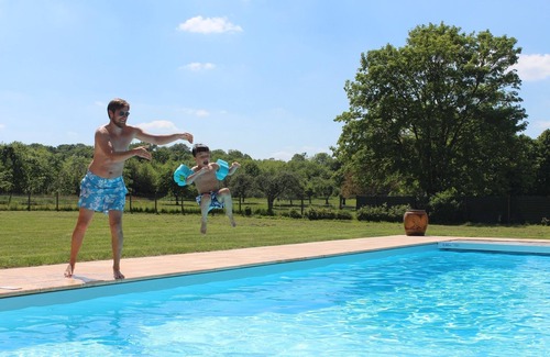 Charming house in the private park of Château de Boucéel/12km Mont Saint Michel is located in Vergoncey. Charming house in the private park of Château de Boucéel/12km Mont Saint Michel provides accommodation, featuring Balcony/Terrace, Kitchen, Pool, among other amenities. This House features Balcony/Terrace, Kitchen, Pool, to make your stay a comfortable one.