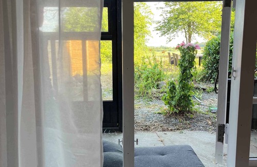 You stay here in peace and privacy, with a beautiful view across open fields. In the evening, the sun sets gently over the landscape, and all you hear are the natural sounds – no traffic, no noise.