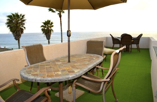 Charming 1 Br. Apt., North Pacific Beach attached to beautiful ocean front home. Great charming apt. with panoramic ocean view, private rooftop deck. This private rooftop deck has an unobstructive spectacular view of the Pacific Ocean and miles of sandy coasts. Located less than 100 steps from San Diego's top Tourmaline surf break. A perfect beach apt. attached to a beautiful ocean front home and is located between La Jolla and Pacific Beach. This apt. has a fully equipped kitchen that allows you to prepare meals while enjoying this breathtaking location. You are only steps to the beach and world renound boardwalk that stretches for miles along the ocean or bay. This is the perfect spot for a morning jog or bike ride and of course bikes are included with the rental. You are just a few miles away from La Jolla where you can enjoy five star dining and world class shopping. You may also elect to enjoy the relaxed atmosphere of the Pacifc Beach coastal community.