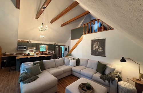 Unwind in Cub Run at this adorable cabin. With 2 bedrooms including king beds and 1 loft with 4 queen beds, this retreat offers a cozy escape for up to 8 people. Enjoy amenities like peaceful lakefront w/water access, proximity to Mammoth Cave National Park and hiking trails, Wi-Fi, AC/heating, washing machine access in unfinished basement. Fully stocked kitchen for cooking in and gas grill provided. Deck faces the water. Screened in porch. The bathroom comes equipped with towels, a hair dryer, and start up basics for your convenience. Smart locks for easy check in and out. We'll be available to answer any questions while you stay at our place. https://secure.smore.com/n/b8fx2