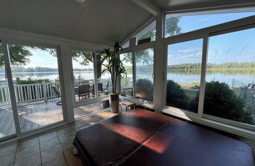 Escape to our cozy two-bedroom, one-bathroom lakefront home on a 187-acre all-sports, spring-fed lake. Each room is equipped with a smart TV for your entertainment. One bedroom features a king-size bed, while the other offers a queen-size bed, ensuring a restful stay. Enjoy both dining areas providing stunning sunset views. Relax in the hot tub located in the four-season room or enjoy our kayaks, excellent fishing, and swimming. With two beautiful golf courses within 10 minutes and two ski areas within 15 minutes, this serene retreat blends comfort, adventure, and convenience for the perfect getaway.