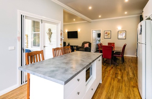 Lovely renovated cottage 15 mins from Bendigo CBD. Secure yard, 2 queen bedrooms, cot.All abilities shower and separate toilet. Undercover parking and breakfast included. Toiletries.