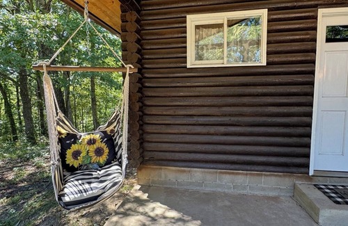 Get ready to relax in this highland cows and sunflower themed log cabin on a back gravel road where it's quiet and peaceful! This lovely open layout retreat features 1 queen bed and 1 twin over full size bunk bed, perfect for a cozy getaway. With amenities like central heat and air conditioning, WiFi, and a Smart TV, you will unwind in comfort. Kitchenette area features an apartment size refrigerator with freezer, microwave, coffee pot and a nice round table with seating for 4. The bathroom includes a huge shower, towels and soaps for added convenience.