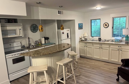 This charming Seascape Villa is close to the beach and conveniently located in West Beach Village with close proximity to golf, restaurants, and easy access to bike paths. The fully equipped kitchen offers an eat-at island for three. Cozy living space features a comfortable sofa and club chair, and a smart TV for streaming your favorites when it’s time to relax (no cable TV). A spacious sunroom adds another comfortable living space, offering a well-loved leather recliner, and the futon is perfect for reading a favorite novel or an afternoon nap. Step just outside and enjoy a close-up view of the lovely tropical vegetation that makes Kiawah special. This villa is perfect for a romantic getaway, or a small family.