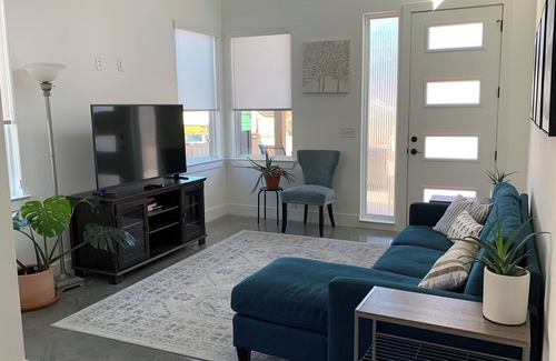 Discover the beauty of Austin from this cute & stylish 2-bedroom house. We welcome you to our modern property featuring 1 queen bed, 1 full bed, several air mattresses, and 2.5 bathrooms. Enjoy the bright and comfortable living room with a cozy sectional sofa. With amenities like a front patio, AC/heat, WiFi, and a washing machine + dryer, you will feel right at home. Cook up something in our gas-powered fully stocked kitchen or feel free to order in. You're sure to make fantastic memories with a stay at our place.