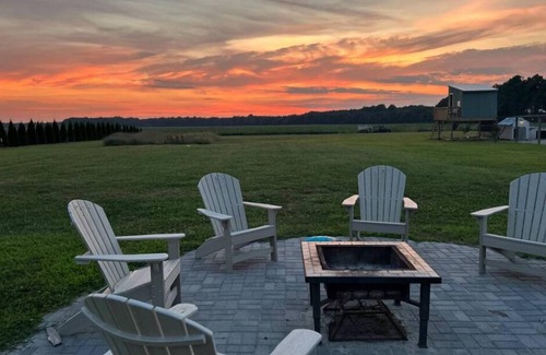 Experience the charm of our coastal country cottage, perfectly situated on our small hobby farm amidst picturesque farmland and just a stone's throw from Delaware and Maryland beaches. This cozy retreat is an ideal getaway for small families, couples, or a group of friends, accommodating up to five guests. One queen bed, one full size bed and a pull out twin sofa. There is an indoor outhouse and outdoor shower. At the coastal country cottage you'll be surrounded by serene fields and the delightful sounds of chickens greeting the dawn. Wake up to our energetic rooster, General Tso, or enjoy the sight of local birds peeking through your window. In the evenings, unwind by the firepit or take a peaceful nighttime swim. Plus, our friendly English lab, Maizey, will be there to warmly greet you upon your arrival.