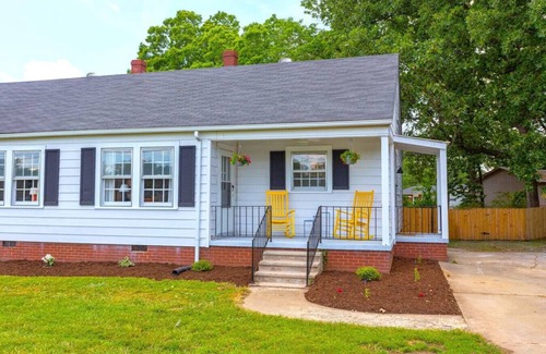 Charming 2-bedroom home in central Graham with rocking chair front porch! Our beautiful, family and pet-friendly home is one side of a georgeously remodeled duplex. Walk across the street to the lovely Bill Cooke Park. Just blocks from downtown Graham. A short drive to restaurants, breweries, and museums. Only minutes to Elon. Our kitchen is fully-equipped. Enjoy a cozy table in the den for doing work.