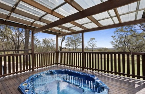 Privately situated in a high set position on a beautiful Goomburra cattle farm. Two bedrooms accommodation in cozy Sheepwash Cottage, over 100 years old, with a fully equipped kitchen, combustion wood stove and outdoor fire pit. Enjoy your evening in an outdoor spa with a stunning rural view. Just 1 hour and 40 minutes drive from Brisbane. Relax with the whole family at nature’s sights, sounds and aromas will embrace you as you wander the property, talk to the cattle, collect your breakfast eggs, laze under the trees or put your feet up on the decks and soak up the peace and quiet.