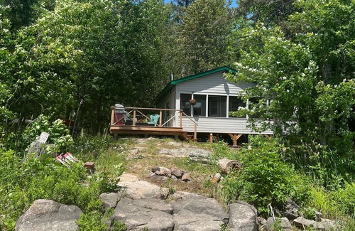 Main cabin features a screened-in porch on two sides with a beautiful view of the French River. BBQ and chairs on sun deck. Adjacent attractive, comfortable bunkie, which could sleep two or more guests (one queen bed on ground level and a second mattress up the ladder in the loft). Overall perfect for a 4 adults and two children getaway.
