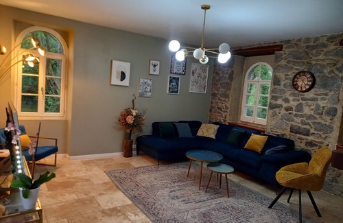 We offer for rent a characterful mill-house, a renovated stone building over 200 years old, located in the heart of the charming village of Rébénacq, a Béarnaise bastide at the gateway to the Ossau Valley, just 20 minutes from Pau, the capital of Béarn and birthplace of King Henry IV.