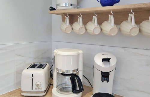 Business stay: 5 adults maximum - 1 cleaning fee per stay of 1 to 14 nights required. The cottage is on the owners' property, fully fenced grounds with surveillance cameras on the exterior. Privacy is limited by opaque windows on the north facade and plants. The cottage is on two levels, facing south - LEVEL 0: entrance hall and fully equipped kitchen (11.8m²) (dishwasher, refrigerator, freezer compartment, oven, electric hob, microwave, kettle, toaster, filter coffee maker and Senseo coffee pod machine, blender, indoor/outdoor electric griddle) - living room with dining area and lounge area, sofa, television - bedroom (1) (13.6m²) with a 160x200 bed, storage - separate toilet with hand basin.