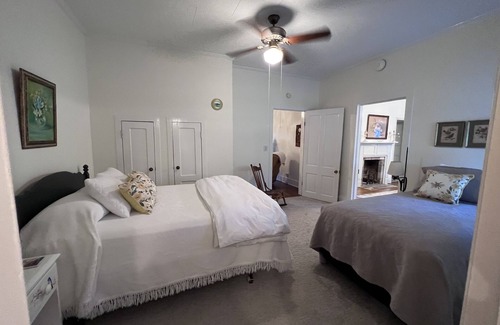 This special property has been in our family since 1908. The historical character has been maintained through a mild restoration with vintage décor. The property has plenty of outdoor spaces including a front porch for rocking and a screened porch as well as a fire pit for indulging in evening s'mores and horseshoes. An indoor porch is a great place for enjoying morning coffee, tea or hot cocoa from the stocked coffee bar while engaging in a puzzle or board game.