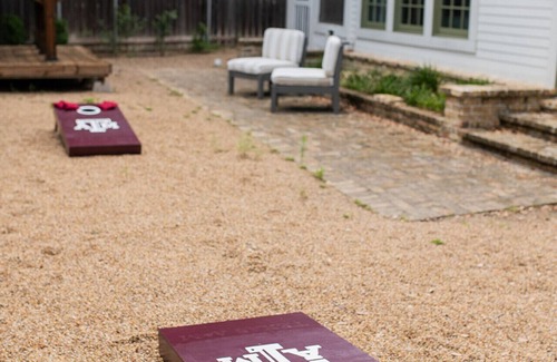 But the allure of "The Belle on Baker" extends beyond its walls. Step outside to discover a charming backyard oasis, complete with cornhole and a grill - perfect for soaking in the Texas sunshine and enjoying al fresco dining with loved ones.