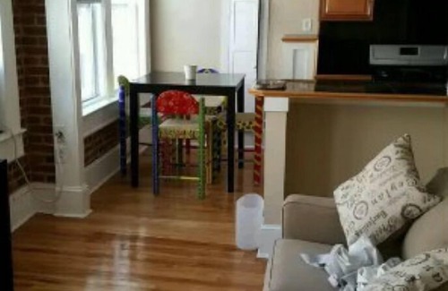 This is a vintage building, built in 1920, with modern updates. Tall ceilings, huge windows, refinished hardwood floors, brick walls, walk in closet,new kitchen and bathroom. Nice and bright! its 2nd floor from the front door and 3rd floor from the back door. We do not have elevators. apt is renovated but hallways are not. please reserve the free parking space at booking and let us know If driving a truck