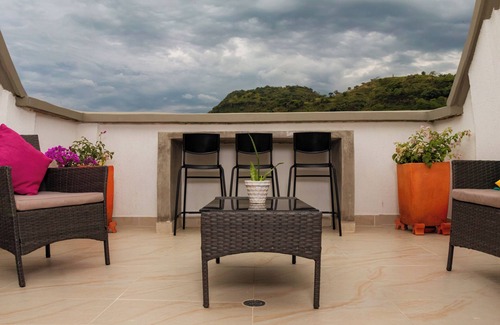 This marvelous studio in San Gil is the perfect cozy retreat for guests looking to explore the area. With two twin beds in the bedroom and one sofa bed in the living room, there's plenty of space for everyone to relax. It has a beautiful terrace with one of the best views in San Gil. This studio is located in a new building with access to a swimming pool, sauna, and steam room. The studio is next to the San Gil Plaza shopping center and is surrounded by a supermarket, cinema, shops, a pharmacy, and the best restaurants in San Gil. It’s just two blocks from the best nightclubs and only two minutes from the transport terminal. El Gallineral Park is five minutes away, Barichara is 30 minutes, Pinchote is five minutes, and Chicamocha National Park is one hour away. Enjoy the convenience of Wi-Fi and a smart TV during your stay. We look forward to hosting you at our place.