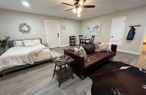 Perfect for a romantic getaway, a business trip or a safe & quiet escape, you’ll stay in a private, clean, updated single-level studio with it’s own entrance. Located on a quiet, tree-lined street you’ll be just 5 minutes to historic downtown Taylor, 20 minutes to Georgetown and 40 minutes to all that Austin has to offer.