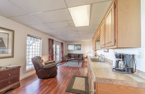 Whale Rock Suite #1 is a large suite ready to make your dreams of a fun and exciting vacation come true! Take in the amazing views of the Pacific and the beach from your expansive yard on one of the comfortable wooden chairs. There is a shared gas grill, which can be a great place to cook. The home was also recently updated to add a full kitchen with an electric stove and oven and all the essential kitchen utensils and dishware you could need.
