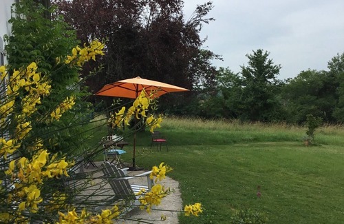 This lovely fully independent summer gîte is located in an exceptionally green and tranquil setting with view overlooking the large park and the country landscape.