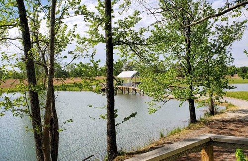 Lakeside treehouse retreat on a working crop farm, quiet and peaceful, perfect for a respite in the country. Ideal setting to spend time fishing, canoeing, birdwatching and more. Beautiful sunrises and sunsets over the lake. A 1/4 mile trail circles around the lake and property for walking or cycling. Bring your bicycles to enjoy.