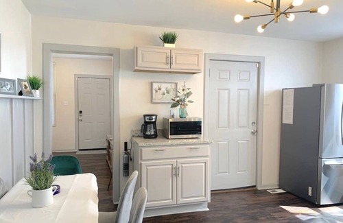 Discover this charming Tudor style historic building with a modern mid-century flair! This cozy yet sophisticated nest is available for short-term retreats and midterm accommodations. The perfectly situated home is steps away from Das Bevo and Gravois street restaurants, about 6-minute drive from Forest Park and its surrounding entertainments, and about 10-minute drive from Downtown, St. Louis Zoo, the Bush Stadium, the Arch and many more attractions St. Louis has to offer.