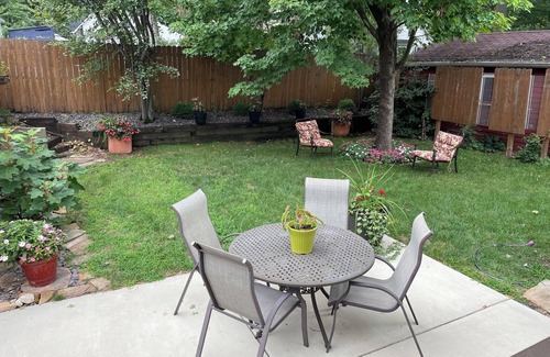 Welcome to this charming brick bungalow with 2-bedroom + Den with separate work space and 55 in tv. Conveniently located in the lovely Historic West Side, you are minutes away from the medical and government complexes as well as our beautiful Washington Park. Recently remodeled Master suite features high end King mattress and luxurious bath with dual vanities, tiled shower, and separate WC. The house features modern amenities like WiFi, 3 smart tvs, updated kitchen with SS appliances. Main floor boasts hardwood floors, bright and sunny windows, a LR with 65 in smart tv & leather reclining sofa. 2nd bdrm with Queen bed just steps from the 2nd mid-century full bath. The private fenced back yd has Weber grill, table & chairs for outside dining. Bsmt provides washer dryer and we offer the 1 car garage for your car's protection from the elements. We are snowbirds in FL and have equipped our Summer home with all the luxuries and conveniences you have in your own homes!