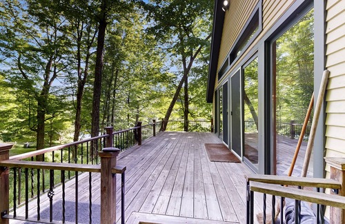 This beautiful property boasts a range of amenities, including WiFi, a fully equipped kitchen with modern appliances, and access to 2 kayaks and 1 canoe at the home's nearby Sugar Shack on the pond's edge. Enjoy the stunning mountain views from the balcony or explore the surrounding area with activities like cross-country skiing and snowboarding just a stone's throw away.