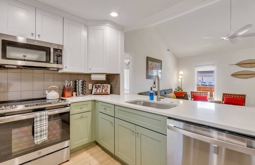 The chef's dream kitchen is fully equipped with high-end appliances, granite countertops, and a deluxe coffee bar for a perfect start to your day. Dine together at the family-style table, or opt for al fresco dining on the covered deck with serene waterfront views.