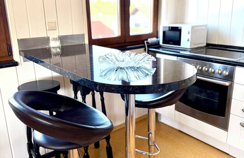 * Fully equipped kitchen: Open-plan kitchen with an additional bar-style dining area. Everything is provided – stove, oven, microwave, coffee machine, kettle, dishwasher, as well as dishes and cutlery.