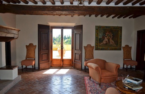Villa Strozzi is a stunning historical mansion rising from the top of its hill and dominating the extensive Tuscan woodland enclosed by its fence. Spectacular views, nature and complete privacy. State of Art renovation completed in 2014. The outdoor area includes a private garden with Pool (12”x15”); outdoor dining terrace equipped with BBQ; A private wildlife reserve, abundant trails for cool walks inside the Gated Woodlands. The property also includes a Chapel, dedicated to St Catherine. In the middle of Tuscan culture, 60 km far from Florence, Pisa, Siena and Lucca and the sea. Grocery stores, restaurants, post-office, bar, pharmacy, and bank are available in the nearby village of Corazzano, just 6 kms away. Locally available activities include: Tennis, Horseback Riding, Cooking Classes, Truffle Hunting, Quad Adventures as well as the exploration of medieval villages, and artisan studios. In-house cooking classes are available upon request organised by the owner, who lives nearby.
