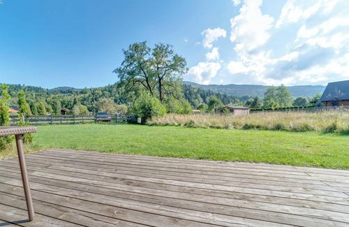 3-room chalet 70 m2 on 2 levels. Partly with sloping ceilings: lounge with 1 double sofabed, dining table and TV. Exit to the terrace. Open kitchen (dishwasher, 2 ceramic glass hob hotplates, microwave, freezer). Sep. WC. Upper floor: 1 room with 1 bed (80 cm, length 200 cm), 1 double bed (140 cm, length 200 cm). 1 room with 1 bed (80 cm, length 200 cm), 1 double bed (140 cm, length 200 cm). Shower/WC. Gas heating. Terrace 18 m2. Terrace furniture, deck chairs (3). Beautiful view of the countryside. Facilities: hair dryer. Internet (WiFi). Please note: smoke alarm. House for maximum 6 adults and 2 children.