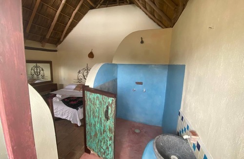 What you should know about this room—besides its beauty and rustic charm—is that, being a palapa-style space, we share our environment with nature. Occasionally, a curious squirrel might pay an unexpected visit. It loves to explore and, most of all, snacks! To avoid surprises, we recommend keeping food stored properly. This way, both guests and squirrels can enjoy in harmony. :)