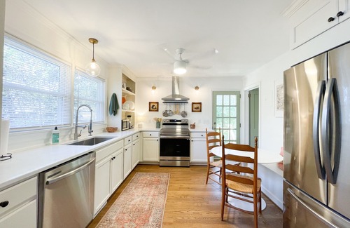 Meticulously restored mid century cottage in the heart of Greensboro. This delightful three bedroom one bath home was lovingly renovated top to bottom with modern amenities and a nod to the past. Tucked in the trees and just a few minutes walk to the Arboretum, you will feel right at home in this cozy 1000 sq foot home. Plush memory foam mattresses, washer & dryer and fully equipped eat-in kitchen are just a few of the amenities provided for your stay.