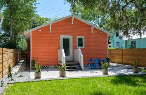 Keep it simple at this peaceful and centrally-located house. The Peach House offers our guests a fully remodeled, clean, calm, and inviting atmosphere to take in all that Gainesville--the hometown of Tom Petty--has to offer. The 2 bedroom, 2.5 bathroom, 1000 square foot historic home has an ideal location and a modern luxury interior feel with a covered front porch, a fully fenced-in backyard, a concrete patio, and one dedicated parking space.