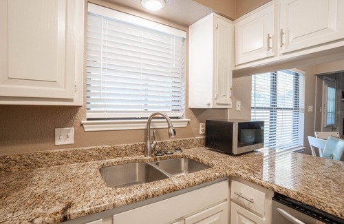 -Stocked kitchen with air fryer, microwave, sharp knives, variety of cookware, and much more.