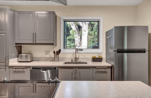Large open living space with vaulted ceilings and lots of natural light. Great room concept with pass through from dining area to the completely remodeled kitchen. Kitchen has breakfast bar seating for 5 and views of the creek in addition to solid surface countertops, stainless steel appliances and stocked kitchen. Two bedrooms with queen size beds and two bathrooms. The master bath is completely remodeled to include dual shower heads in the walk in shower. Large upright soaking tub in the second bathroom is jetted. The property is one unit of a duplex and has a 1 car garage stall available and parking for 2 vehicles plus it is walking distance to Downtown, Westchester Lagoon and the Coastal Trail. A short distance to many of downtown and midtowns best restaurants and shopping and on the bus route. Easy access to miles of Greenbelt which extends to the APU/University trail systems and the Coastal Trail. Valley of the Moon Park is on the other side of the creek from this property and there is a playground for the little explorers. The Chester Creek Greenbelt is lighted and groomed for biking, skiing and walking in the winter and perfect for leisurely strolls in the summer and evenings. Watch salmon travel up the creek and immerse yourself in nature with the abundance of natural habitat surrounding you.