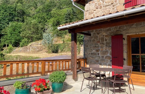 Nice old stone house with a view of the Eyrieux river and the Dolce Via green way, in the Monts d'Ardèche Natural Regional Parc - Geoparc Mondial UNESCO, with a large shady terrace at the level of the kitchen-living room, shared by us, and a private garden behind the bedroom on the floor above.