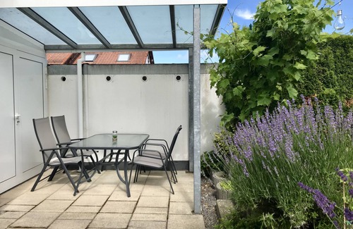 In the garden is a table with four chairs and two chairs. Here you can relax in the summer, sunbathe or chill out, because here it is nice and quiet. The terrace is big enough with over 20 square meters and offers enough space. In summer and in winter, the garden is green and almost invisible from the terrace.
