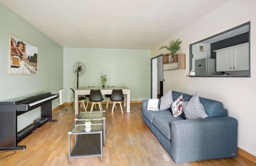 Amusez-vous avec toute la famille dans ce logement chic, idéal pour vos déplacements professionnels ou en famille. Le linge de maison et le nécessaire de cuisson sont fournis. Vous avez une salle de séjour et 2 chambres équipées chacune d'un bureau; une machine à laver, lave-vaisselle, machine à café, bouilloire, grille-pain, table de ping-pong, piano et deux places de stationnement disponibles. Enfin, un service de maintenance est à votre disposition H24.
