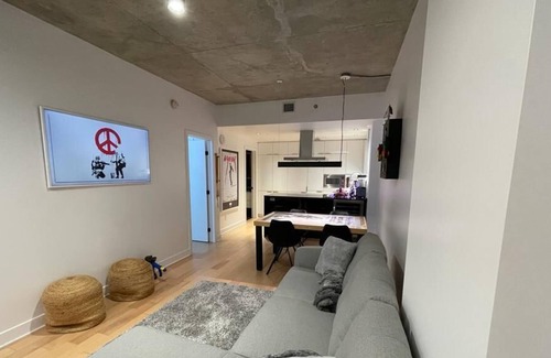 In the historic location of Old Port Montreal, with amazing restaurants, bars, night clubs!! Private entrance with full kitchen, chic ambiance, frame TV and games to keep you entertained! Feel like you’re at the hotel!
