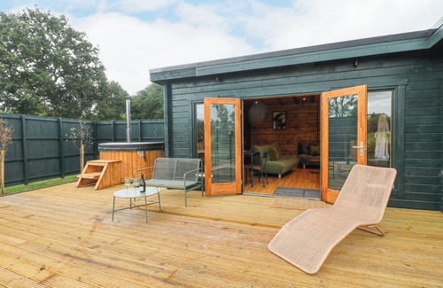 Chicken Run, a single-storey lodge, consists of an open-plan living space including a kitchen with microwave, fridge/freezer, dishwasher, and oven, and a living/dining room with smart TV and seating for four. The bedrooms consist of a king-size bed and an adult bunk bed, along with a bathroom. Outside, there is a front garden with decking, lawn, wood-fired hot tub, plunge pool, barbecue, fire pit, and outdoor seating, plus off-road parking. One well-behaved dog welcome. Sorry, no smoking. Shop 2.1 miles, pub 0.8 miles. WiFi, fuel, power, bed linen, and towels are all included in the price. Enjoy a refreshing break with your loved ones at Chicken Run. Note: Steps down from decking to lawn.