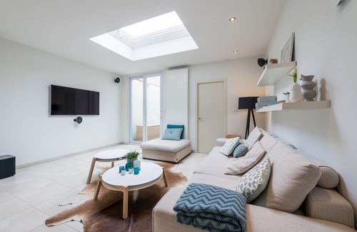 Maison Juliet has an open living room with dining area, kitchen, seating area and a cozy city garden. The house is in a quiet street with 25m bus stop. In the house is all comfort for both children and adults (free wifi, dishwasher, separate toilet, central heating, flat screen with digital TV, ...). Bicycles are safe in the bicycle lock with storage space.