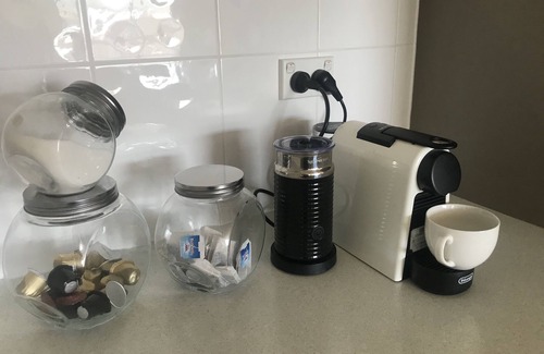 The kitchen has a mini nespresso, dishwasher, sandwich maker and toaster.