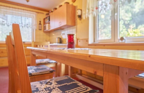 Chlívce 8 km from Hronov: Cosy country house "Chlívce u Hronova", 2 storeys, detached. Outside the resort, in a quiet, elevated position. For shared use: property 1'000 m2, swimming pool round (4,60 m diameter, seasonal availability: 01.Jul. - 31.Aug.). Arbour, garden furniture, barbecue, fireplace, barbecue house, children's playground, parking at the house. Shop 3.5 km, shopping centre 8 km, restaurant 250 m, bus stop "Chlívce" 500 m, railway station "Hronov, Červený Kostelec" 8 km, outdoor swimming pool 9 km, indoor swimming pool 35 km, natural swimming pond 4 km. Ski lift, slopes 200 m, cross country ski track 10 m. Nearby attractions: Muzeum Aloise Jiráska/Hronov 8 km, Adršpašsko-teplické skály 17 km, Broumovské stěny, Náchod 17 km, Ratibořice a Babiččino údolí 20 km, Broumov 28 km, Relaxpark Pec pod Sněžkou 50 km. Well-known ski regions can easily be reached: Radvanice 10 km, Petřikovice 16 km, Mladé Buky 34 km, Janské Lázně 40 km. Well-known lakes can easily be reached: vodní nádrž Rozkoš 25 m. Children's house in the garden. It is possible to arrange meals in a private club, which is at a distance of 250 m (on request). This cottage can be rented as a whole house or separately as 4 fully equipped apartments in the low season.