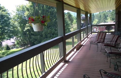 This lovely, spacious Oakland, Maryland home comfortably sleeps 10 people. There are four bedrooms and three full baths. It offers a well-appointed kitchen, dining room and a huge, brightly lit craft area. There are multiple cozy seating areas including two big porches at your disposal when you need a break from creating.