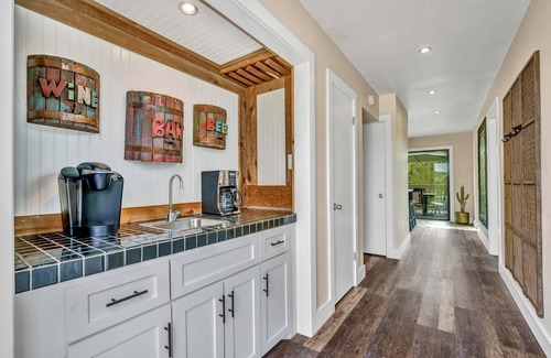 You’ll find the kitchen to be fully stocked with everything one would need to put on a proper dinner party, including formal dinnerware, wine glasses, plate chargers, and linen napkins. Please use melamine (plastic) dinnerware outdoors, if possible. Please place any kitchen items back in the drawer or cabinet that they came from, so the cleaning crew can keep track of them easily. Also, any small appliances used from the pantry should be placed back when finished. The fire extinguisher is located under the sink.
