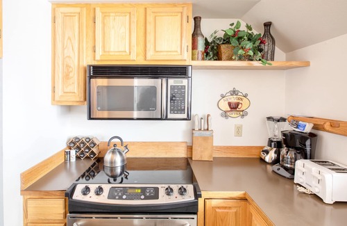 This comfortable two-bedroom, two-bathroom Cimarron Lodge condo is nestled between Coonskin Lift #7 and the San Miguel River.