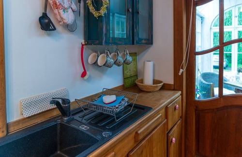 It offers cozy comfort in a nostalgic atmosphere for 3 people. (There is a double bed (140 x 200) and a small sofa bed (112 x 195). The equipment is mainly determined by natural materials. In the small cherry wood built-in kitchen, you can be culinary creative. At breakfast in the orangery you can enjoy the sound of the river in the rising sun.