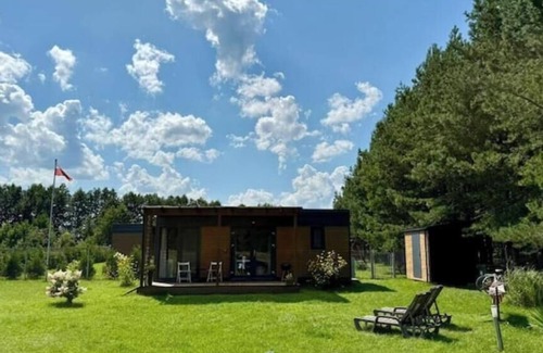 I offer for rent a relaxing and recreational cottage located on the exclusive property in the town of Krzywe, Mazury 100 m from the lake. The fenced-in area will ensure your dog runs freely throughout the day. The property has the character of a year-round modular cottage,located on a plot of 700m2 among fields and meadows. The idyllic neighborhood guarantees rest in peace and quiet. The heating system also guarantees a comfortable holiday in winter.